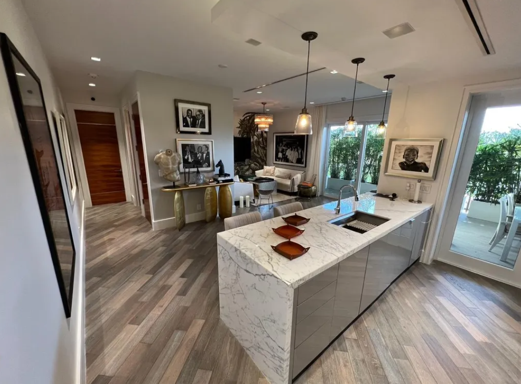 Boutique corner residence designed for entertaining: lush covered terrace with BBQ, French white-oak floors, a Neff kitchen with Wolf/Sub-Zero, plus an infinity pool and fitness center on site. Perfect for an intimate, design-led Friendsgiving. Realty One Group Selling Bahamas
